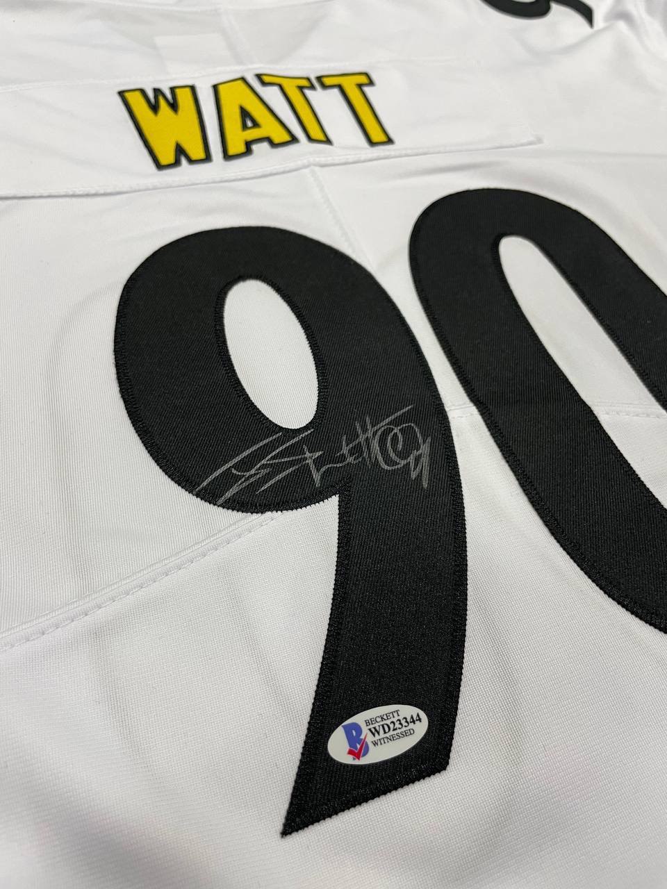 Presented here is an official Pittsburgh Steelers game jersey, personally hand-signed by T.J. Watt. Its authenticity is certified by the industry-leading Beckett Authentication Services (BAS). This guarantees the jersey’s status as a genuine and formidable relic from the career of a defender destined for the Hall of Fame.