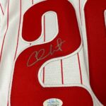 This legendary piece of Philadelphia baseball history captures the fierce intensity, clutch brilliance, and winning DNA of Chase Utley (b. 1978) – the second baseman whose hard-nosed style, timely power, and unmatched baseball intellect became the heartbeat of the Phillies’ golden era and their 2008 World Series championship. Legendary postseason performances, and a gritty professionalism that made him one of the most respected and beloved players to ever wear the red pinstripes.